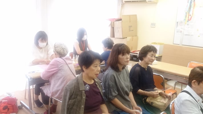 今回初参加のセラピストHさんもお一人お一人、丁寧にトリートメントされており、たくさんのおばあちゃんたちが笑顔になっていました♪さすがですね!