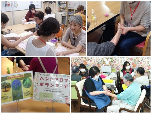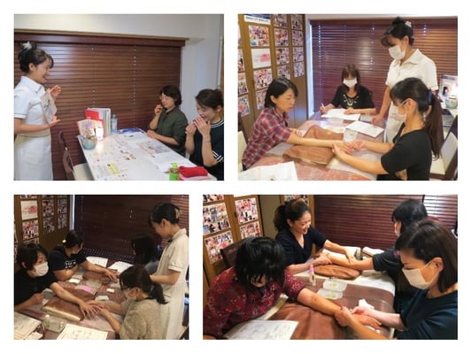受講内容:学科(アロマとリンパについて)と実技(ハンドトリートメント)
